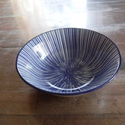 Fin liten skål i randigt blått och vitt