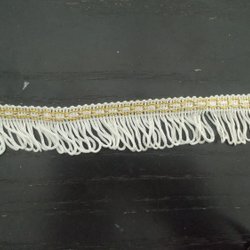 Vitt dekorationsband med frans