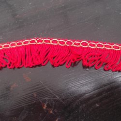Rött dekorationsband med lång frans OBS mörkare röd