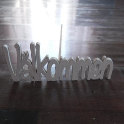 Vit träskylt med texten Välkommen