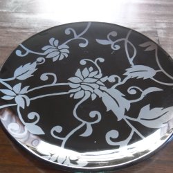 Liten glasbricka i svart med mönster