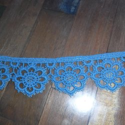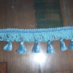 Blått dekorationsband med frans och tofsar