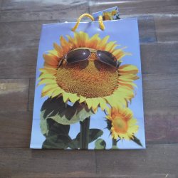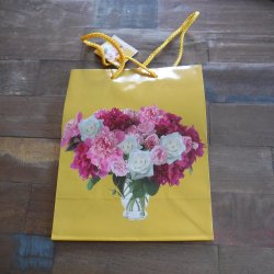 Gul presentpåse med blommotiv