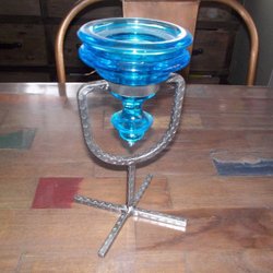 Ljusstake i järn med glashållare