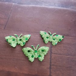 Tre st gröna fjärilar med glitter och paljetter