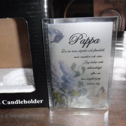 Ljuslykta i glas med text Pappa