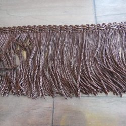 Brunt dekorationsband med lång frans