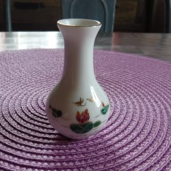 En liten vas med näckros motiv