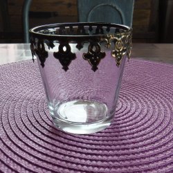 Ljuslykta i glas med dekoration upptill