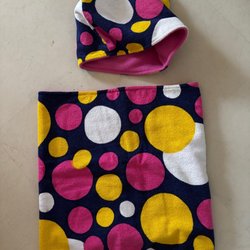 Mössa och halsduk. Tubhalsduk. Retro tyg. Fleecefodrad.