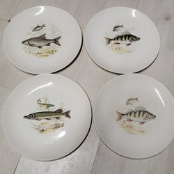 4 st Crown Ducal Mattallrikar med Fiskmotiv