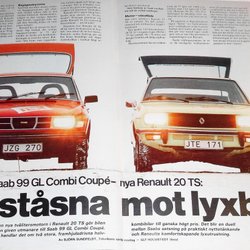 SAAB 99 GL COMBI COUPÉ, RENAULT 20 TS - TEST, PRESSKLIPP TIDNINGSARTIKEL 1978