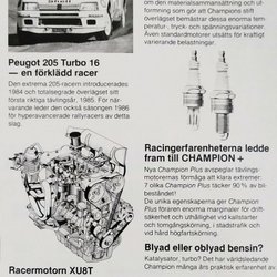 CHAMPION TÄNDSTIFT - VINNANDE RACINGTEKNIK, REKLAM TIDNINGSANNONS 1986