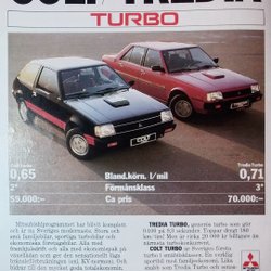 MITSUBISHI - COLT, TREDIA TURBO, REKLAM TIDNINGSANNONS 1983