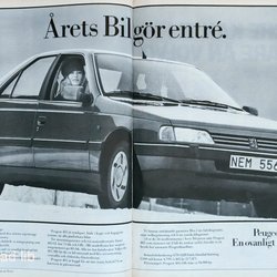 PEUGEOT 405 - EN OVANLIGT BEGÅVAD BIL, STOR TIDNINGSANNONS, AD 1988