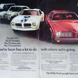 GM - GTO, FIREBIRD, TRANS AM, GRAND AM, STOR REKLAMANNONS 1973