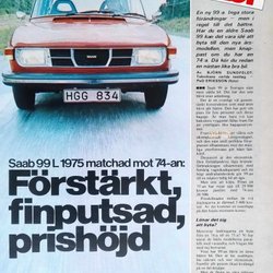 SAAB 99L, PRESSKLIPP ARTIKEL 1974