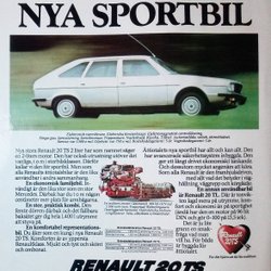 RENAULT 20 TS - ÅTTIOTALETS NYA SPORTBIL, TIDNINGSANNONS 1978