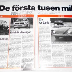 VOLVO, VW GOLF, VW 1303 - DE FÖRSTA 1000 MILEN, PRESSKLIPP 1975