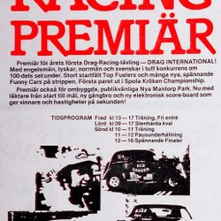 DRAG RACING PREMIÄR NYA MANTORP 13, 14, 15 MAJ, TIDNINGSANNONS 1977