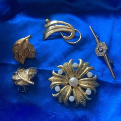 Vintage guldsmycken 3 st broscher 1 par öronclips
