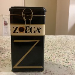 Zoegas kaffe plåt burkmed lock.