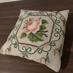 Broderad Kudde med Rosmotiv