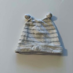 H&M, ljusgrå/vit randig tunn mössa storlek 50