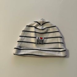 H&M, vit/svart randig tunn mössa storlek 56