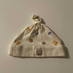 Vit tunn mössa med blom motiv storlek One Size