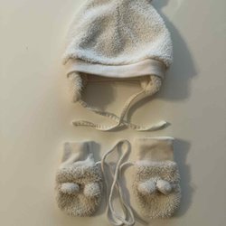 H&M, beige/vit randig tunn mössa storlek 62