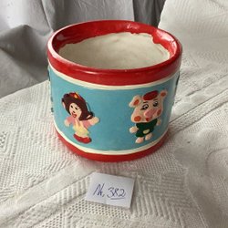 En söt blomkruka med målade julmotiv