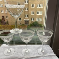 9 äldre vinglas - slipat