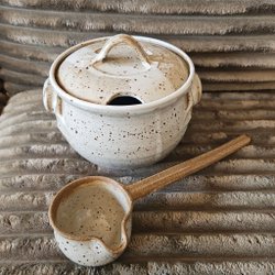Keramiksåsskål med slev stor vintage signerad