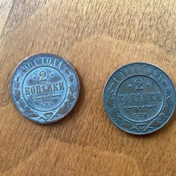 2 st. Ryska mynt från tidigt 1900-tal.