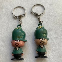 2 st retro/vintage nyckelringar BP/BP gubbe/pysslingen