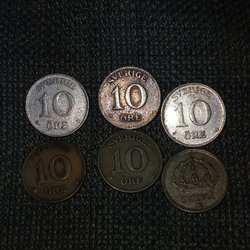 6 st 10-öringar i silver