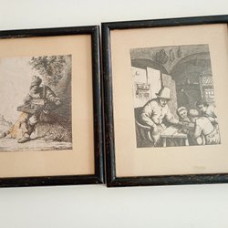 Inramade etsningar av J van Vliet och A van Ostade