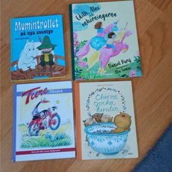 Samling av barnböcker: Mumin, Edith och enhörningarna, Ture Trana, Chinos
