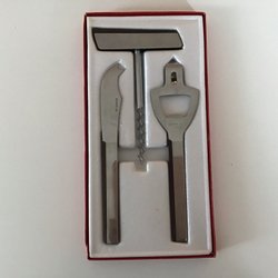 Rostfritt stål ostkniv, korkskruv och kapsylöppnare 70-tal