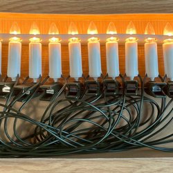 Röd adventsljusstake av lackad metall vintage