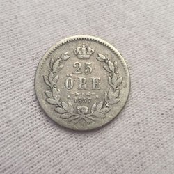 25 Öre 1857 Säklsynt Årtal R Oscar I