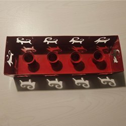 Röd adventsljusstake i plåt med bockar