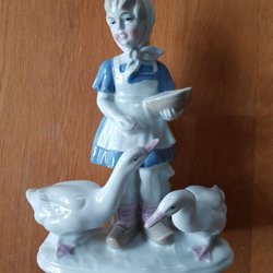Keramik figurin flicka med ankor, Lippeisdorf 1877 GDR