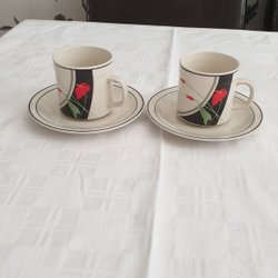 Två Onlac International kaffe/te muggar med fat