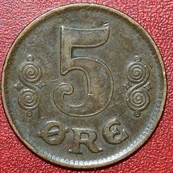 5 öre 1919 Brons - Christian X Danmark KM#814