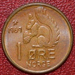 1 öre 1969 - Mycket fin - Olav V KM#403 Norge