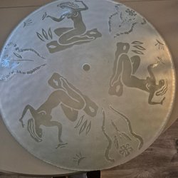 Taklampa med frostat glas och kristalldekorationer