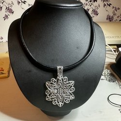 Läderhalsband med snirklig blomma