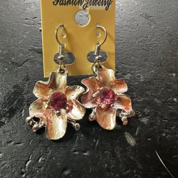 Örhängen med blommor och rosa stenar